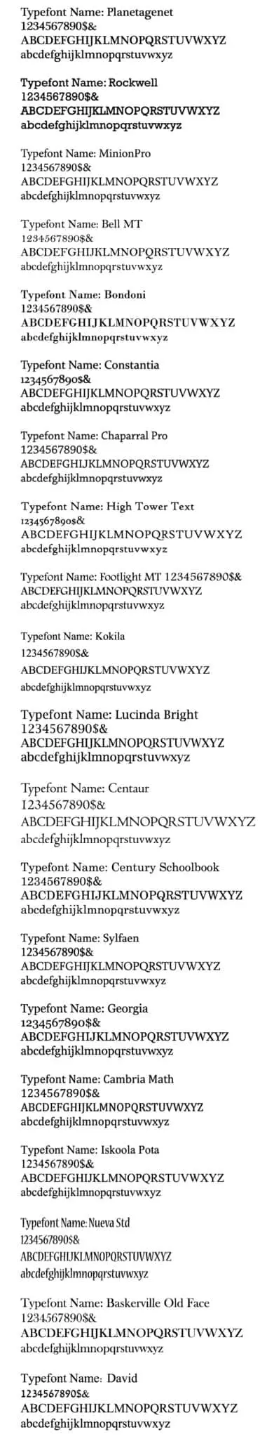 Example: Times New Roman, Georgia, Planetagenet